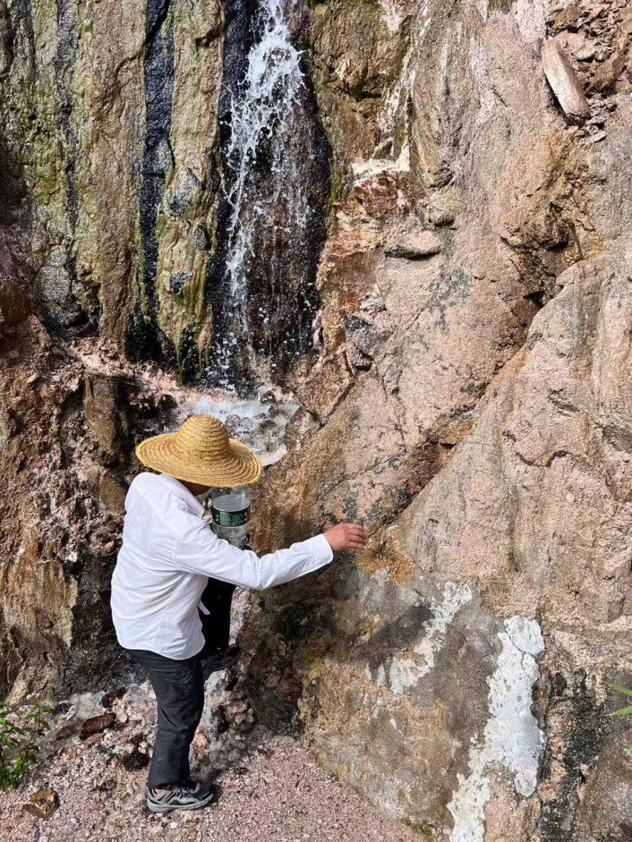 闽东南地质大队工作人员在诏安某矿山实施水工环勘探地表水采集工作