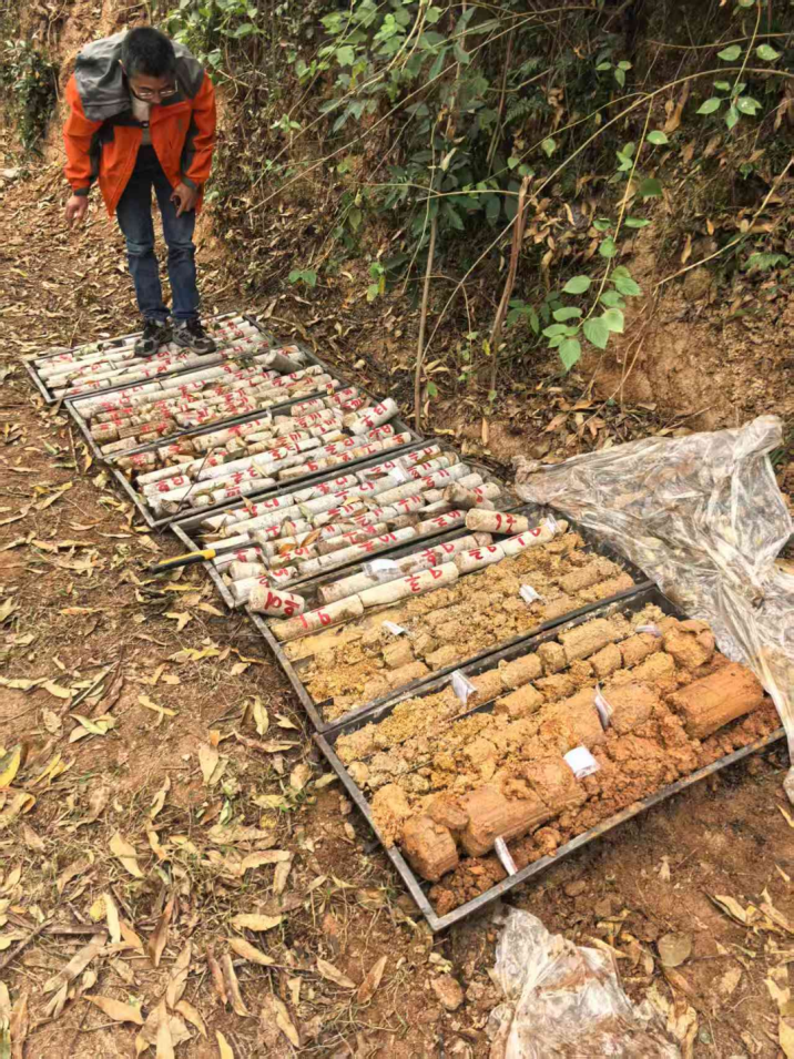 闽东南地质大队工作人员在诏安某矿山开展野外岩心编录