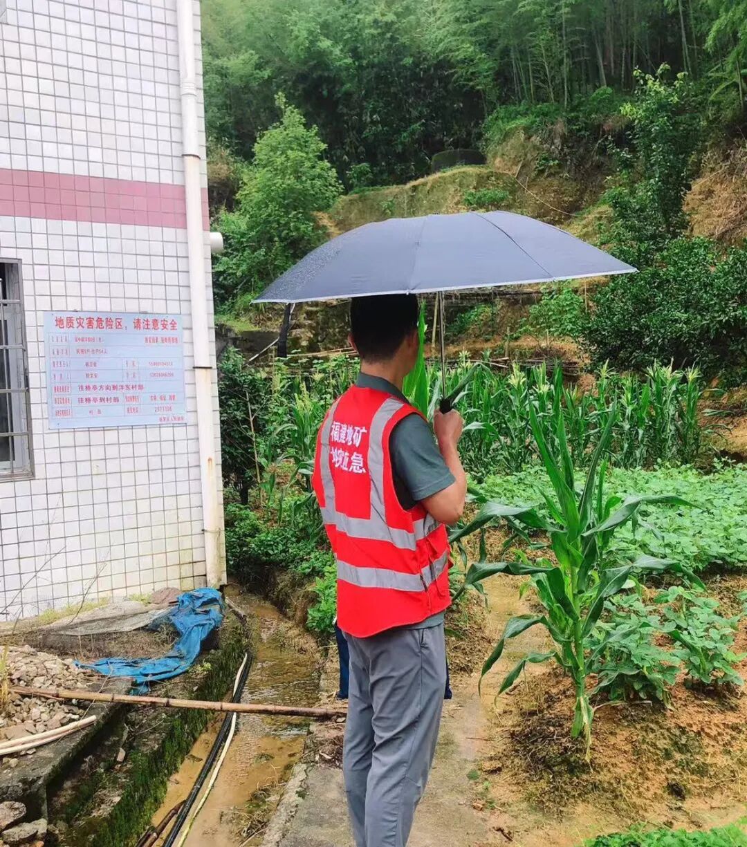 技术人员在万安镇地灾隐患点治理项目巡排查