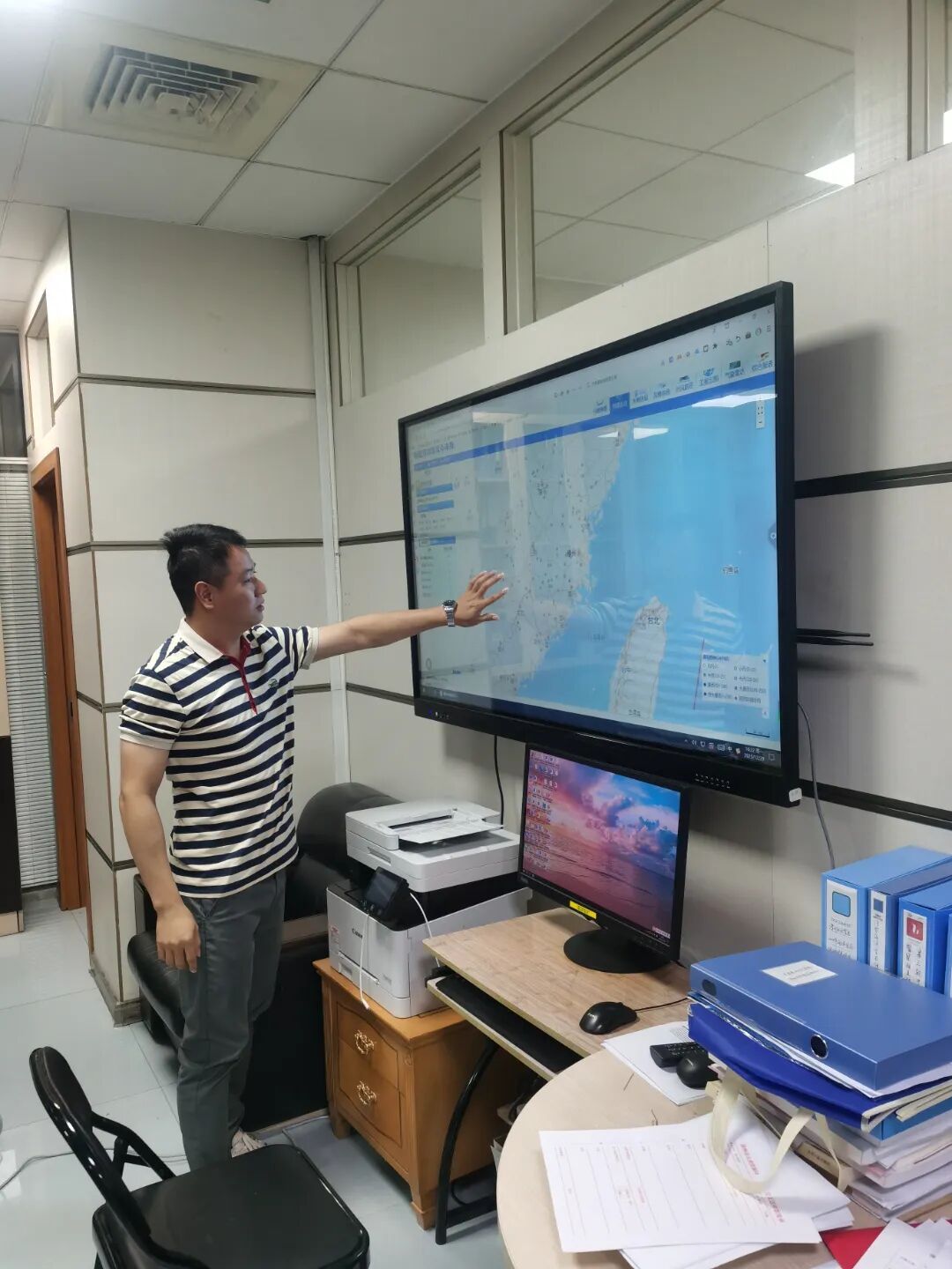 杨俊智在防御“桦加沙”台风值班