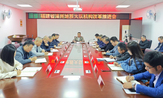 近日,福建省漳州地质大队召开机构改革工作推进会。队领导班子成员,原福建省闽南地质大队、原福建省196地质大队科室和二级单位党政负责人等参加会议。