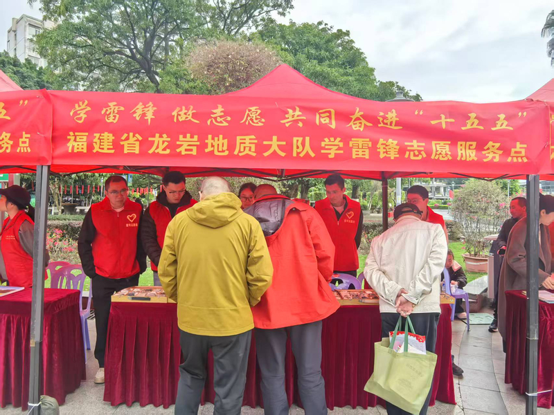 福建省龙岩地质大队 3月5日,福建省龙岩地质大队组织青年志愿者,走进龙岩市中心城区街心广场,开展“大爱龙岩·情暖老幼”学雷锋主题志愿服务活动,将地质科普知识送到市民身边。
