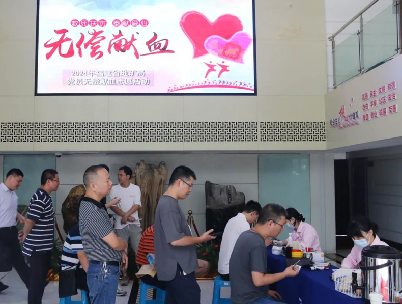 在省地矿局机关大院,60多名党员、干部职工在省血液中心医护人员和局机关党委工作人员的协调引导下,按照扫码登记、血压检测、采血化验、正式献血的步骤井然有序开展献血。此次活动共有49人成功献血,累计献血量达16400毫升。