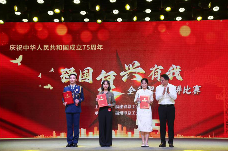 10月17日至18日,由福建省总工会主办、福州市总工会承办的“强国复兴有我——庆祝中华人民共和国成立75周年”全省职工主题宣讲比赛在福州举行。省地质调查研究院职工叶韵代表省机械化工矿冶工会、省地矿局参赛,从全省26组选手中脱颖而出获银奖。