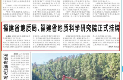 3月20日出版的中国矿业报刊发《福建地质局、福建省地质科学研究院正式挂牌》,报道福建地质局、福建省地质科学研究院正式挂牌。